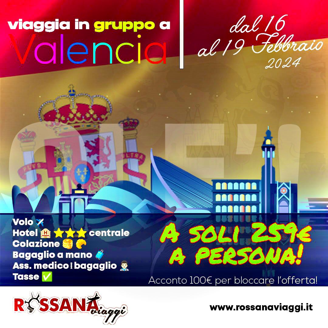 Approfitta delle nostre offerte ora! π₯ #SOFIA 23/26 DIC Prezzo a persona 229,00€ Clicca qui per riscattare la tua offerta! β¨Disneylandβ¨π«π· 3gg Prezzo a persona 259,00€ Clicca qui per riscattare la tua offerta! β #VIAGGIOdiGRUPPO Prezzo a persona 259,00€ Clicca qui per riscattare la tua offerta! πͺπ¬#SHARMπͺπ¬ 1Sett Prezzo a persona 609,00€ Clicca qui per riscattare la tua offerta! π¨πΏ#PRAGA 13/15 GEN Prezzo a persona 189,00€ Clicca qui per riscattare la tua offerta! ππΊ #BUDAPEST 08/10 GEN Prezzo a persona 185,00€ Clicca qui per riscattare la tua offerta! π·π΄ #BUCAREST 21/23 GEN Prezzo a persona 179,00€ Clicca qui per riscattare la tua offerta! π©πͺ #BERLINO 11/13 GEN Prezzo a persona 209,00€ Clicca qui per riscattare la tua offerta! πͺπΈ#BARCELLONA 13/15GEN Prezzo a persona 199,00€ Clicca qui per riscattare la tua offerta! πΌ #LONDRA 23/26 DIC Prezzo a persona 329,00€ Clicca qui per riscattare la tua offerta! βοΈ #MADRID 22/25 DIC Prezzo a persona 239,00€ Clicca qui per riscattare la tua offerta! π©πͺ #BERLINO 11/13 GEN Prezzo a persona 209,00€ Clicca qui per riscattare la tua offerta!